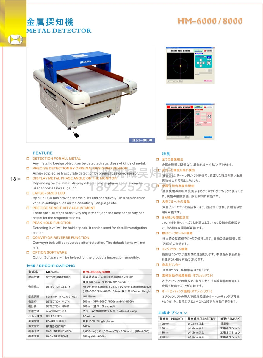 • 羽島HASHIMA HM-6000/HM-8000金屬探測器