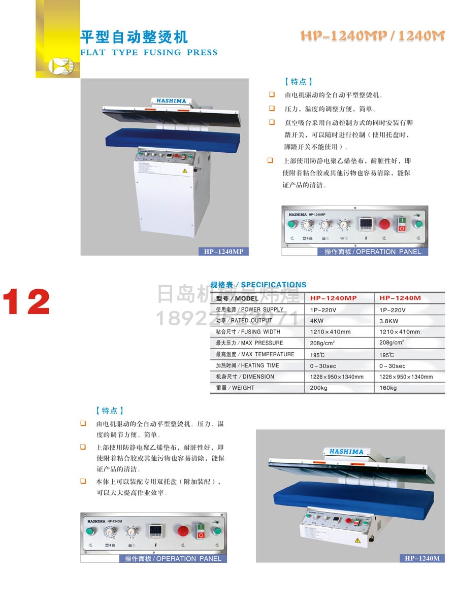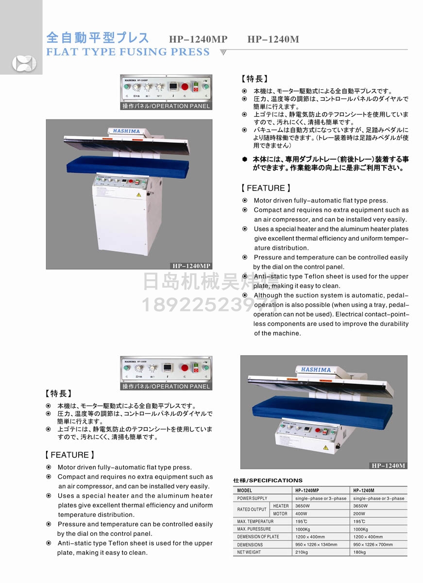 • 羽島HASHIMA HP-1240MP/1240M 平型自動(dòng)整燙機